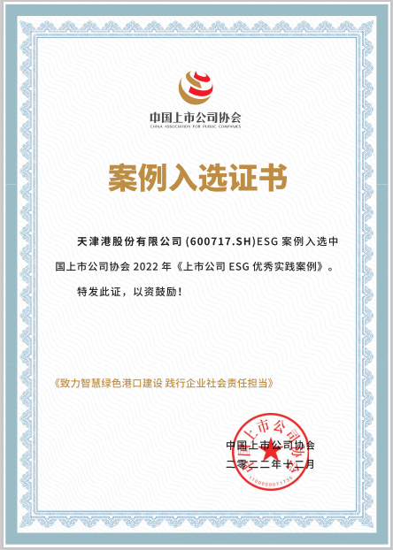2022年12月,公司入選中國上市公司協會2022年《上市公司ESG優秀實踐案例》