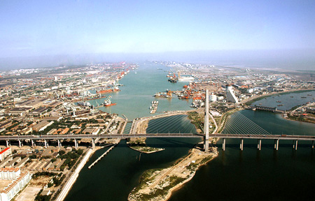 天(tian)(tian)津港(gang)(gang)(gang)對外(wai)聯(lian)系廣泛,同(tong)世界上180多(duo)個(ge)國(guo)家和地(di)區(qu)的(de)500多(duo)個(ge)港(gang)(gang)(gang)口(kou)(kou)有貿易往來,集裝(zhuang)箱(xiang)班輪航線達到147條,每月航班550余班,聯(lian)通(tong)世界各主要港(gang)(gang)(gang)口(kou)(kou)。天(tian)(tian)津港(gang)(gang)(gang)對內輻射力強,腹(fu)地(di)面積近500萬平方公里,占全國(guo)總(zong)面積的(de)52%。全港(gang)(gang)(gang)70%左右的(de)貨(huo)物吞(tun)吐量和50%以上的(de)口(kou)(kou)岸進出口(kou)(kou)貨(huo)值來自天(tian)(tian)津以外(wai)的(de)各省、市、自治區(qu)。